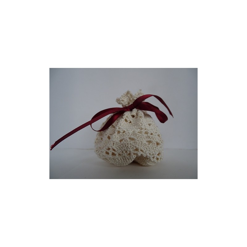 BOURSE REALISEE EN COTON COLORIS ECRU ET AGREMENTEE D'UN RUBAN SATIN BORDEAUX POUR LE FLOT, SANS COUTURE