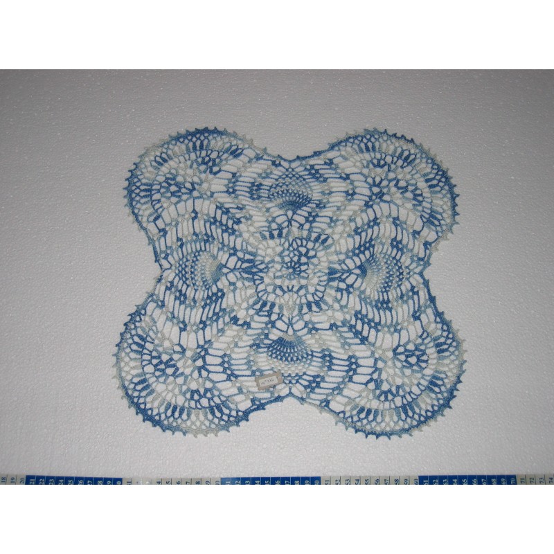 NAPPERON REALISE DANS UN DEGRADE DE BLEU / ECRU DE 38 x 38 CM DE DIAMETRE